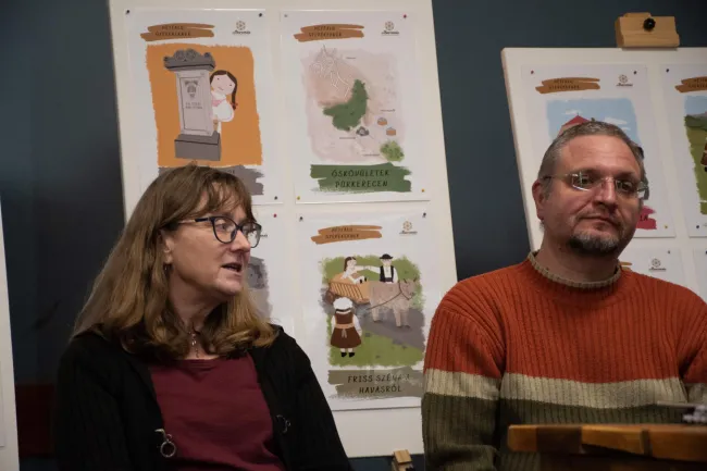 Az idei vásárra készült el a Barcasági füzetek 4. – Hétfalu gyerekeknek című kiadvány, illetve az azonos tematikájú 2023-as Barcasági csángó naptár is, amelynek bemutatója szintén a rendezvény részét képezte. Nika Izabella kérdéseire a Pro Terra Barcensis projekt vezetője, Hlavathy Zsuzsánna, a két szerző, Kovács Lehel István, valamint e sorok írója, illetve a nagyváradi Szűcs László válaszolt, aki a korrektúrát végezte. A beszélgetésből körvonalazódtak a feladatkörök, valamint a szövegírás nehézségei, hiszen gyerekekhez kellett szólni, a grafikai munka buktatói, hiszen az illusztrátoroknak olyan területet kellett megjeleníteniük, amelyet egyáltalán nem ismertek. Amint azonban Szűcs László, akinek a barcasági csángók világa szintén ismeretlen volt, elmondta: a kiadvány túlmutat a lokalitáson, hiszen mások is tanulhatnak belőle, illetve a feladatok más régiókra is adaptálhatóak.