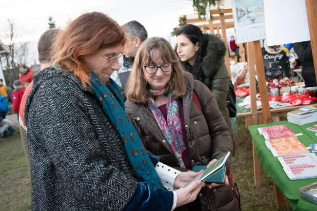 A koncertek vagy a csoportos foglalkozások egyaránt szóltak kicsiknek és nagyoknak, sőt, idén a legkisebbeknek is kínáltak adventi Kerekítőt, és öröm volt látni, hogy mennyi szülő hozta el kisgyermekét Lukács Gabriella mondokázós foglalkozására, de a nagyobbak is szívesen alkották meg karácsonyi díszeiket a vásárban. Ráadásul a kézműves műhelymunkán a magyar mellett több román szót is hallani lehetett, ami részben azt jelenti, hogy a vegyesházasságban élő gyermekek mindkét szülője megjelent, másrészt pedig – amint Sipos Emese a HMIK elnöke elmondta – a helyi román közösség hiányolja az ilyen jellegű tevékenységeket, így tagjai szívesen látogatják a magyar eseményeket, de mi, magyarok is örömmel hallgattuk a George Moroianu iskola román tagozatos diákjainak karácsonyi műsorát, hiszen az ünnepi várakozás minden nyelven megteremti a maga remekműveit, legyenek azok népénekek vagy modern dalok.