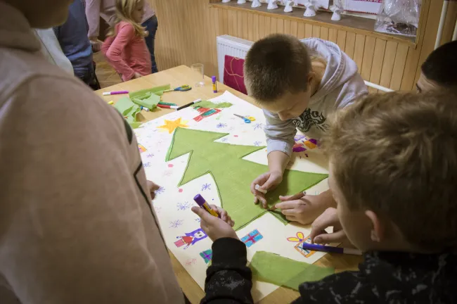 Körülbelül harminc általános iskolás és óvodás gyermekkel készítettünk közösen karácsonyi díszeket, koszorúkat és karácsonyi témájú rajzokat. A gyermekek többsége jól beszél magyarul, azonban vannak köztük olyanok is, akiknek szülei vegyes házasságban élnek, így a gyermekek inkább csak a szerb nyelvet használják. Nagy örömünkre szolgál, hogy ezek a szülők is fontosnak tartják, hogy a gyermekeik a magyar egyesület által szervezett rendezvényeken, foglalkozásokon is részt vegyenek.