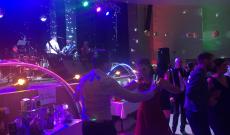 Próbáltunk mindent ehhez igazítani, így kerültek a neonfények a színpad köré, lufik a falra, csillogó és bársony anyagok mindenfelé, CD-k és lemezek az oszlopokra, lampionok a táncparkett fölé, színes szalvéták és szívószálak az asztalokra és végül, de nem utolsó sorban, pöttyös ruhák a fiatalokra.