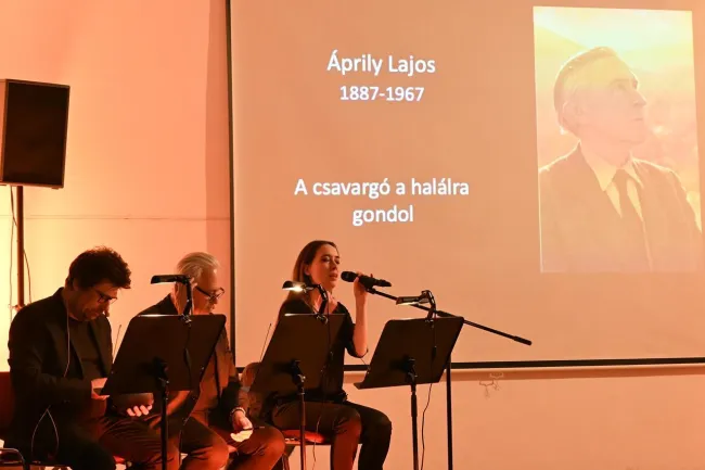 A műsorban Éder Enikő, Tapasztó Ernő, Balog József olvastak fel egy versválogatást az elmúlt 100 év erdélyi költészetéből.