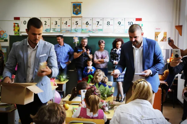A Báthory István Általános Iskola igazgatója, Szederjesi György, az ünnepélyes tanévnyitó alkalmával szeretettel köszöntött minden kedves jelenlévőt: gyermeket, szülőt és pedagógust, de kimondottan azt a tizenhat kis előkészítőst, akik első alkalommal lépték ma át az iskola küszöbét. Beszédében kiemelte, hogy ezekben az iskolabezárásoktól és összevonásoktól hangos időszakokban még inkább szükség van a közös összefogásra és az együttműködésre.