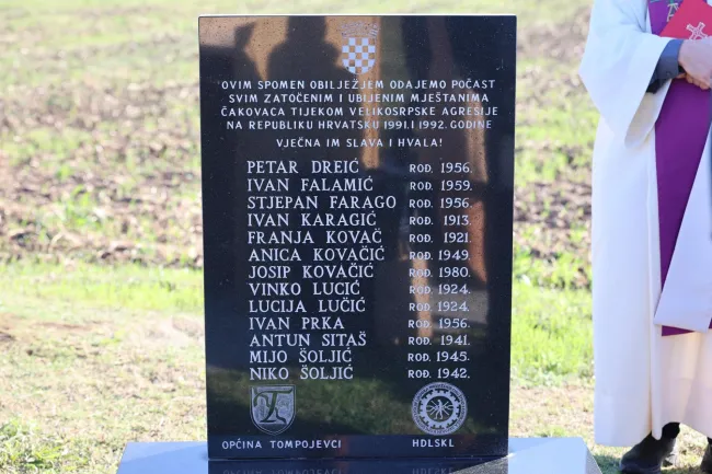 Koszorúzással és katolikus misével egybekötött szomorú megemlékezés történt a kelet-szlavóniai magyar faluban a 33 évvel ezelőtti borzalmas mészárlásra. 1991 őszén a szerb megszállók 13 csákováci magyart és horvátot gyilkoltak meg, és tetemeiket a falu bejáratánál található kútba dobták. A legidősebb áldozat 78, a legfiatalabb 11 éves volt, maradványaikat csak évekkel később, a békés visszatérés éveiben találták meg.