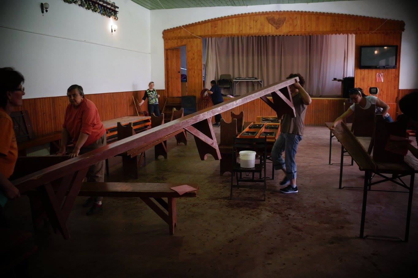 Ez idő alatt a hölgyek az épületben lévő eszközöket, ablakokat, edényeket varázsolták tisztává, míg néhány asszony a konyhán tüsténkedett, hogy az egész napos munka után finom grillen sütött csirkeszárny és kolbász is kerüljön az asztalra. És bár példaértékű ez az összefogás, mégsem új keletű a zsobokiak életében, hiszen évek óta gyakorolják ezt, a közösséget is összetartó szép szokást. Mint ahogy az sem új, hogy egy-egy ilyen közmunka végeztével felköszöntik azon résztvevőket, akik a két közmunka időpontja között ünnepelték születésnapjukat. Így volt ez most is, amikor is 55 részvevőnek énekelték a Boldog születésnap című dalt, és mindenki részesült egy kis szimbolikus ajándékban, amit a Kulturális Egyesület biztosított az ünnepelteknek. Két nagy torta is szétosztásra került, miközben a település zenészei hajnalig tartó kellemes muzsikával szórakoztatták a jelenlevőket.