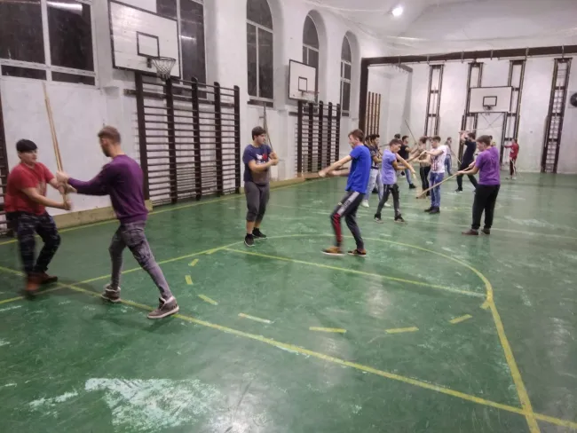 November óta tartok baranta edzéseket Temesváron, a Gerhardinum Római Katolikus Teológiai Líceumban. Ezalatt az idő alatt az alsó tagozatos diákok és a líceumban tanulók kipróbálták a szablyát, az íjat, a karikás ostort, különböző hosszúságú botokat és az önvédelmi gyakorlatokra is elkezdtek felkészülni. A barantának fontos része a fizikai felkészülés. Bőven volt része ebből is a fiataloknak.