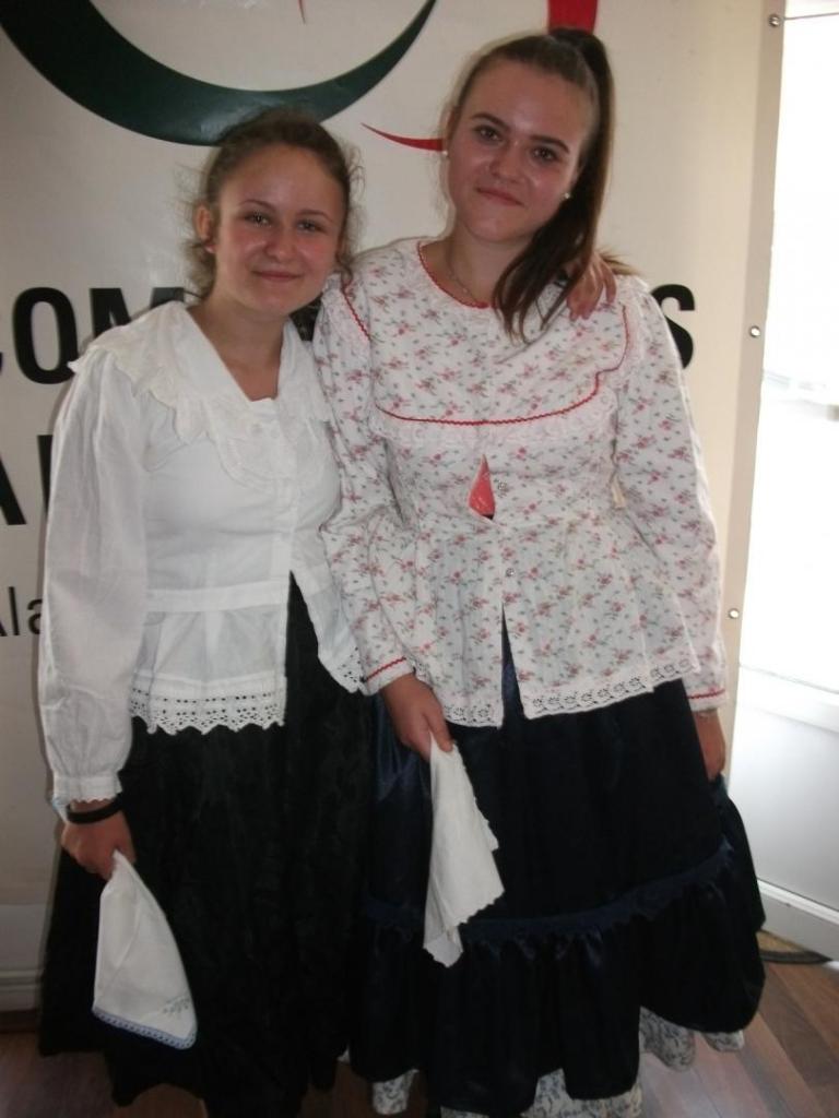 Szeptember 19-én, szombaton délután el is indult az első általunk szervezett kulturális-közösségi program: magyar néptánc tanfolyam vette kezdetét a Szeged Táncegyüttes két táncosával. Nagy Zita és Adorjányi Botond vezetésével kicsik és nagyok egyaránt nagy lelkesedéssel sajátították el az alaplépéseket. A dél-alföldi táncok mellett az ottani népviseletet is ki-, pontosabban felpróbálhatták a fiatalok.