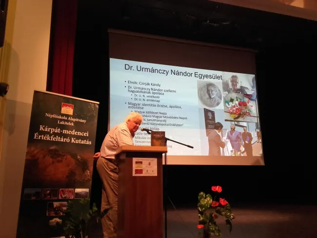 Az egykori történelmi Gyergyószék egész területét érintő, 23 település feltárása, közel 50 egyetemi hallgató és oktató közreműködésével valósult meg. A fiatal kutatók a konferencián szép számmal résztvevő polgármesterek, helyi segítők, interjúalanyok és minden érdeklődő előtt számot adtak tapasztalataikról, értékelték a faluszociológiai jellegű terepi munkát,és igyekeztek a külső szemlélő nézőpontjából beazonosítható, a térség számára jövőbeni perspektívát, kitörési pontokat jelentő, és a magyarság helyben maradását támogató lehetőségeket feltárni, kifejteni. Mindezek mellett az egyes kutatócsoportok külön kiemelték, nevesítették és vizuálisan is láthatóvá tették azon értékőrzőket - és jelentős életútjukat -, akik évtizedek óta, konzekvensen küzdenek a magyar kultúra térségi megtartásáért. A közel 300 oldalas, DVD melléklettel ellátott nívós könyv első részében minden településről egy külön fejezet szól, a könyv második részében a gyergyói magyarsággal kapcsolatos tematikus tanulmányok olvashatóak: a Gyergyói-medence története, természetföldrajza, népi építészete, gazdaságtana, népzenei és néptánc hagyományai, vallási élete. Minden jelenlévő egy tiszteletpéldánnyal gyarapodva térhetett haza. Lezsák Sándor elnök, a kutatássorozat megálmodója személyes jelenlétével adott nyomatékot a külhoni magyarság ügyének fontosságáról. Lezsák Sándor köszöntőbeszédében kiemelte, hogy nincsenek képesség nélküli települések és tehetség nélküli emberek, kizárólag tehetségtelen politika létezik. A speciális tehetségek és képességek felderítése, kiteljesítése a Lakiteleki Népfőiskola legfőbb célja és küldetése. Lezsák Sándor kiemelte, hogy „fontos az elszármazottakat visszacsábítanunk, a munkánkkal, a példánkkal, a helytállásunkkal.” Beszédében az értékek értékesítéséről is szót ejtett, és felhívta a konferencia résztvevőinek figyelmét, hogy az értékek nemzedékeken és korosztályokon átívelése, átörökítése és újrateremtése, átértelmezése mindnyájunk feladata, kizárólag ez erősítheti meg a nemzetünket a Kárpát-medencében. Értekeinkkel nem törődni „vakmerő gyávaság” – mondta. Leszák Sándor Tamási Áron szavaival búcsúzott, „A madárnak (…) szárnya van és szabadsága, az embernek pedig egyetlen szülőföldje és sok kötelezettsége.” A könyvbemutatót a Lakiteleki Kösöntyű Néptánccsoport és a Gyergyóremetei Ifjúsági Fúvószenekar fellépése tette még emlékezetesebbé. A konferenciát követően a Csutakfalvi Közösségi Házban a gyergyói kézművesek alkotásait is megtekinthették az érdeklődők a gyergyói helyi termékek és foglalkozások vásárán, bemutatóján, majd helyi zenészek, énekesek szolgáltatták a magyar muzsikát a vacsorához és a baráti, szeretetteljes beszélgetésekhez. Magam is konferencia-előadó voltam, a három fős kutatócsoportunk Maroshévíz, Galócás, Gyergyóvárhegy, Gyergyóhodos és Gyergyósalamás teleüléseken vizsgálódott.