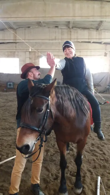 Szabó Marika a nagy fiát hozta edzésekre, de hogy ne fázzon annyira, őt is berángattam a barantába. Pillanatok alatt kiderült, nagyon ügyes, és mindent meg tud csinálni elsőre, amit mutatok. Margitics Ildivel, a Szelid Lovas Központ vezetőjével álltak párba, aki maga is 3 szép leány édesanyja. Nagyon örültem ennek a helyzetnek. Marika akkor lepett meg először igazán, mikor már nem csak másodmagával, hanem lányával és unokájával jött a következő edzésekre. Amíg ilyen nagymamák vannak a Kárpát-medencében, addig nincs félnivalónk.