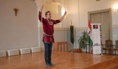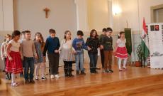 Ezt követően táncbemutató várta a nézőket. A gerhardinumos kisdiákokat Kovács János Petőfi Sándor Program ösztöndíjasa és Ardelean Erika készítette fel. Az elmúlt években azt tapasztaltam, hogy gyakran a színpadra lépők vonakodva, álmos tekintettel mutatnak be egy-egy darabot. Külön öröm volt látni, hogy a gyermekek milyen büszkén és örömmel adták elő tudásuk legjavát. A szeptember óta heti rendszerességgel megtartott táncpróbáknak megérett a gyümölcse. A gyermekek nem csak tudják, de élvezik is a táncot és talán az utóbbi a legfontosabb. Az ilyen élményeknek köszönhetően később, felnőtt fejjel is nagyobb az esély arra, hogy a magyar kultúra felé nyissanak a fellépők.