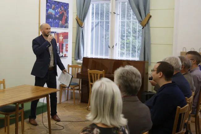 Az alkotókkal Kaszás Kornél, Petőfi ösztöndíjas beszélgetett, hogy a közönség jobban megismerhesse őket. Kertész Attila, az egyesület vezetője elmondta, hogy a tagok lelkesek, megvannak a lehetőségeik a bemutatkozásra, és mindenki „egy irányba mutat”, vagyis egységes a csapatuk.
