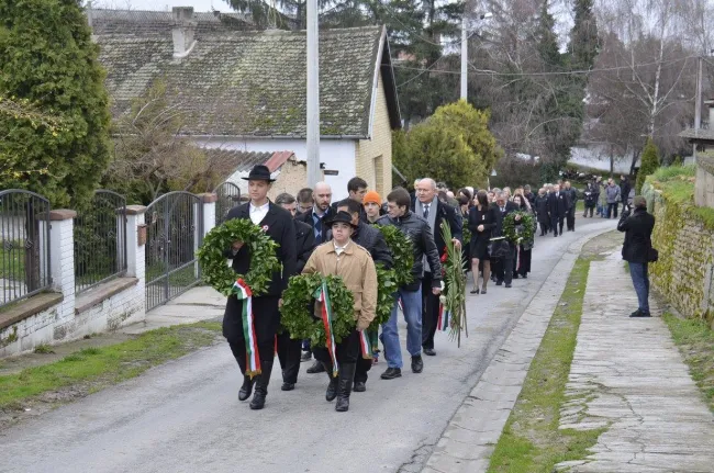 Március 12-én délután a megemlékezés során elsőként a síremlékeket kerestük fel, gyalogosan tettük meg az utat Csúza temetőjéig. Ott a két hazafi alakját és munkásságát Pinkert Ida, a csúzai egyházközség gondnoka ismertette. Síremléküknél az utókor hálás képviselői idén is számos koszorút helyeztek el.