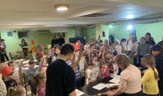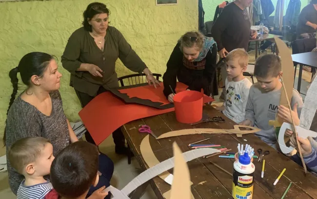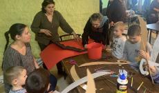 A foglalkozás egy közös énektanulással ért véget, amit citera kísért, és minden gyerek teli torokból énekelt büszkén lóbálva a kis kezük munkáját.