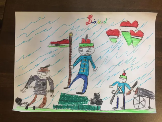 Ezután levetítettünk egy kisfilmet, amely percről percre elevenítette fel 1848. március 15-e legfontosabb mozzanatait.