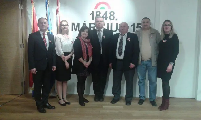 Koszorút helyezett el dr. Szilágyi Péter, nemzetpolitikáért felelős helyettes államtitkár Magyarország kormánya nevében, Magyar József, a zágrábi Magyar Nagykövetség nevében, valamint Aleksandar Tolnauer, az Országos Kisebbségi Tanács elnöke, Jankovics Róbert, a horvátországi magyar kisebbség parlamenti képviselője, Balázs-Piri Zoltán, a Horvátországi Magyarok Országos Koordinációjának elnöke és Csapó Nándor, a Horvátországi Magyar Pedagógusok Fórumának elnöke is. Az egybegyűlteket a zágrábi magyarok nevében Szelman Mariann köszöntötte, emlékeztetett rá, hogy elődeink áldozathozataláról nem szabad megfeledkeznünk és erőfeszítéseket kell tennünk örökségünk fennmaradására. Majd Balázs Piri Nina, a „Zrínyi Miklós” cserkészcsapat tagja, Márkus Katalin „Március 15-re“ című versét olvasta fel.