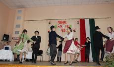 A versenyt követte az ünnepi műsor, melyet mentor helyettesem Perdukné Lator Ilona és jómagam szerkesztettünk, a Csüllő néptáncegyüttes és az iskola szavalói pedig megvalósították.
