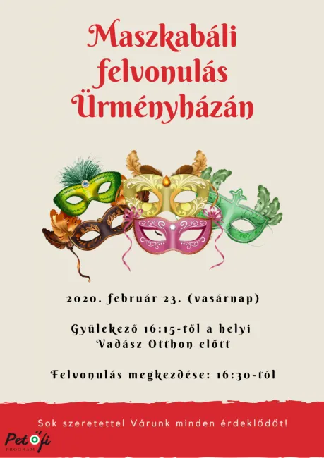 2020. február 23-án sikeresen megszerveztem az ürményházi maszkabált és felvonulást. A helyi Vadász Otthon előtt volt a gyülekező, ahonnan egy közös csoportkép után felvonultunk a faluban. A napsütéses szép időben a felvonulásunk sikeres volt, utána a helyi községháza dísztermébe vettük az irányt. A telth ázas rendezvényt az óvodások ugri-bugris és az általános iskolások verses, énekes és táncos fellépése aranyozta be. A hivatalos rész után a gyermekek egy másfél órás farsangi zsúron vehettek részt. Sokat köszönhetek annak, hogy a szülők és helyi lakosok nagyon talpraesettek, és mindenben a segítségemre voltak. Volt aki a modern tánc tanítását vállalta, mások díszítettek vagy fánkot sütöttek, de a rendezvény végén sem maradtam segítség nélkül, a takarításban is aktívan kivették részüket a felnőttek és a gyerekek. Természetesen minden szülő gondoskodott a gyermekéről, hogy megfelelő jelmezt viseljen az ürményházi maszkabálon. Elmondhatom, hogy egy eseménydús és emlékezetes farsangi maszkabált tudhatunk magunk mögött.