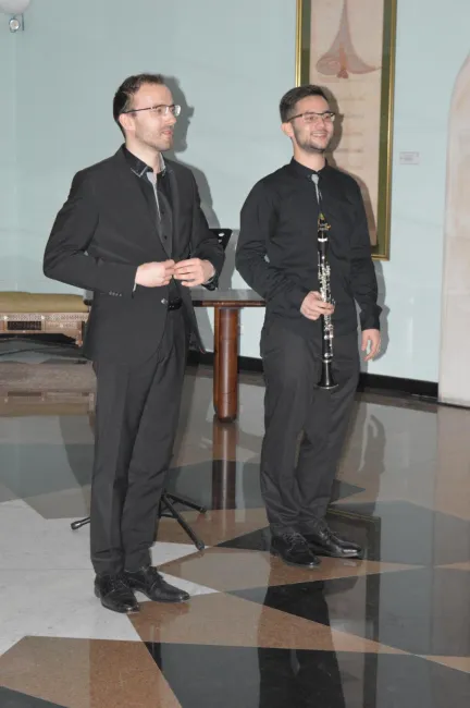 A telt házas közönség előtt két fiatal diplomás zenész, Muratović Timur (klarinét) és Perković Ivan (zongora) lépett fel. A műsoron B. Kovacs, F. Liszt, F. Devienne, C. Debussy, O. Messiaen és A. Romero művei szerepeltek. Reméljük, hogy a fiatal zenészek a közeljövőben nemzetközileg elismert, híres művészekként is játszani fognak a nagyközönségnek.