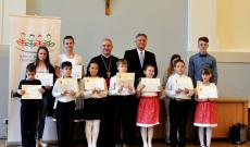 A szívhez szóló éneket követte a különböző versenyeken sikereket elért tanulók díjátadója. Végül az eseményt az idén alakult Fecskevirág Néptánccsoport Gyermekjátékok összeállítása és rövid dunántúli ugrós tánca zárta, amelyre az utóbbi hónapokban sokat készültünk. Ezután következett az Isten áldását a továbbiakban is kérő, és hálaadó imádság, majd az ünnepség után a felszentelés a püspök úr vezetésével.