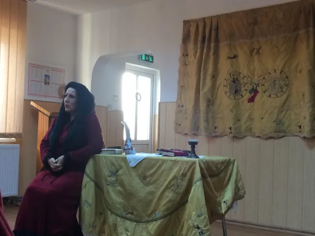 – Fogarason most már másodjára járok. Köszönöm szépen a meghívást a Babits Mihály Önképzőkörnek, Kocsárdi Manyikának, a Petőfi-program ösztöndíjasának, Kolumbán Zsoltnak, és nem utolsó sorban Szász Tibor református tiszteletes úrnak, hogy újra itt lehettem. Ezelőtt 10 évvel Fogarason a református templomban mutattam be a monodrámát, abban a templomban, melyet Bethlen Kata és második férje, széki Teleki József újjáépíttetett. Óriási élmény volt számomra! Megrendítő volt, akárcsak a nagyenyedi kollégiumi előadás, és az olthévízi bemutató (ugyancsak a grófnő építtette a református templomot), hiszen mindhárom helyen Bethlen Kata lépkedett ezelőtt kb. 260-300 éve. Itt említem meg kissé fájó szívvel: Bonyhára még nem jutottam el… Nagyon megható és megtisztelő volt, hogy a fogarasi gyülekezeti terembe díszletként behozták Bethlen Kata esküvői palástját, amit féltve őriz az egyház. 10 évvel ezelőtt a templomban is ott volt, de hogy azzal megleptek, hogy kihozták a templomból, igazán nagyon hálás vagyok, és kicsit büszke is, mert ez csak nekem adatott meg. Köszönöm szépen a fogarasi magyaroknak, hogy „megfogyva bár, de törve nem” megtöltötték a termet. Ugyanezt elmondhatom a rákosi gyülekezetről is. Szombat délután, őszi munkálatok közepette eljöttek és megtelt a gyülekezeti terem. Olthévízen pedig a református templom volt tele. Hálásan köszönöm mindenkinek! Nagy meglepetés volt, hogy eljöttek Olthévízre a brassói Áprily Lajos Főgimnázium X. C osztályos tanulói, Szabóné Both Mária magyartanárukkal és osztályfőnökükkel, Ambrus Imolával. Az osztály Árva Bethlen Kata örökségét fogja ápolni, őrizni. Büszke vagyok rájuk, hiszen én is Brassóban érettségiztem. Kívánok nekik sok sikert, mert ahogy Kodály mondta: „Kultúrát nem lehet örökölni. Az elődök kultúrája egy-kettőre elpárolog, ha minden nemzedék újra meg újra meg nem szerzi magának.”