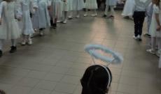 Míg a délelőtt a tanulásé volt a főszerep, délután sorra érkeztek a szülők be az iskolába csillogó, fehér jelmezekkel, szárnyakkal, glóriákkal.