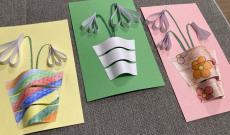 "A télkergető hóvirág" mese kapcsán kis képeslapokat készítettünk.