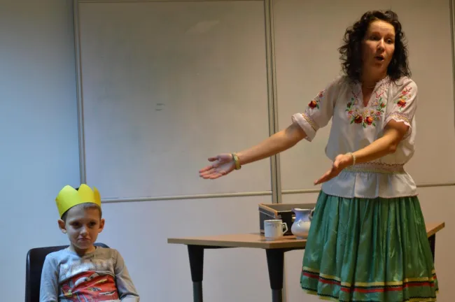 Hétfőn délután vidám gyermeksereg zsongott az AMAPED nagytermében. Benedek Elek: Papucsszaggató Királykisasszony című meséjének interaktív, néptánc elemekkel bővített mesejáték változatát várták kíváncsian. Hamarosan meg is érkezett Domonkos Emese előadó, aki rendkívül élvezetesen és szórakoztatóan vonta be a jókedvű nézőközönséget a játékba. Volt gyermek, aki királyfivá, boszorkánnyá, sőt akár sudár fává változhatott, és a szájról olvasást is kipróbálhatták a lelkes jelenlévők. A legkisebbek sem kívánkoztak egy percre sem máshová, lekötötte őket a történet, és úgy tűnt, pillanatok teltek csak el a kezdés és a közös játékot lelkesen megköszönő taps között. A rendezvény ingyenes volt, csak előzetes regisztrációt igényelt, ám olyan sokan jelezték részvételi szándékukat a hétfői előadásra, hogy szerdán még egyszer, hasonlóan nagy számú közönség előtt lépett a rögtönzött színpadra Domonkos Emese. Gyermekek és felnőttek egyaránt jól szórakoztak. Köszönjük szépen a derűs délutánokat a Kultúráért Gömörben és Gömörön túl Polgári Társulásnak és az AMAPED-nek.