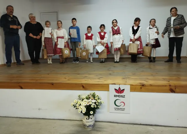 Kisvártatva a háromtagú zsűri: Kelemen Ilona (szervező egyesület titkárnője), László Gergely Pál (a bukovinai székelyek kutatója, aki e támában számos könyvet publikált), és a zsűri elnöke, Deák Piroska megjelent a színpadon és kihirdette az eredményt. A zsűri kiemelte, hogy a szöveg megtanulása és annak értése terén 99.9%-ban elégedett volt. A megőrzendő tájszólás, és a mesében szereplők alakok magukra öltése, bőrükbe bújása, magyarán a mesemondás, mint előadóművészet alapján pedig kiemeltek egy-egy győztes kategóriánként: Nistor Johanna, II. osztályos, és Szatmári Patrik. IV. osztályos tanulót. Miután a zsűri osztott harmadik helyezést állapított meg mindkét kategóriában, elmondható, hogy minden fellépő dobogósként lépett a dobogóra, hogy onnan egy közös fotózást követően a helyezéseket bizonyító oklevéllel, a hozzá járó dicsérettel, ajándéktáskával és széles mosollyal távozzanak.