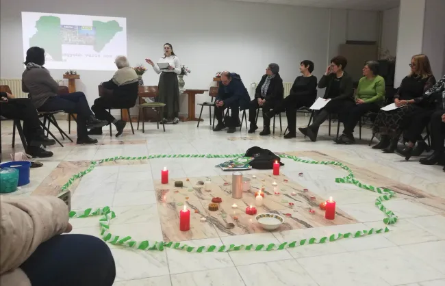 De akad valaki… Egyvalaki, aki azt mondja: Gyere hozzám, tanulj tőlem szelídséget és vedd fel az én igámat! A nő mérlegel… Megszokta, hogy magamaga... de vajon mi könnyebb? Egyedül vinni mindent vagy elfogadni a segítséget, megosztani a terhet, átadni a köveket? A nigériai nők válasza: vigyük Krisztushoz terheinket, az emberiség terheit. Idén ők, a nigériai nők vezették az elmélkedést. Nigériában született szavakkal imádkoztak, de az üzenet mindenhová eljutott: csak mások terhének megosztásával vigasztalhatjuk meg igazán a szenvedőket és építhetünk egy emberibb világot. A nigériai nők megmutatták köveiket, a szegénységet, a családi kötelezettségeket, a bizonytalanságot. Hitről és kitartásról szóló történeteiket, bár ezernyi kilométer választ el bennünket egymástól, átérezhetjük. A társadalmi elnyomás terhét cipelő, özveggyé lett Beatrice történetét, aki 3 kisgyermekét kénytelen egyedül nevelni, akit kisemmiztek, akitől elfordult családja.