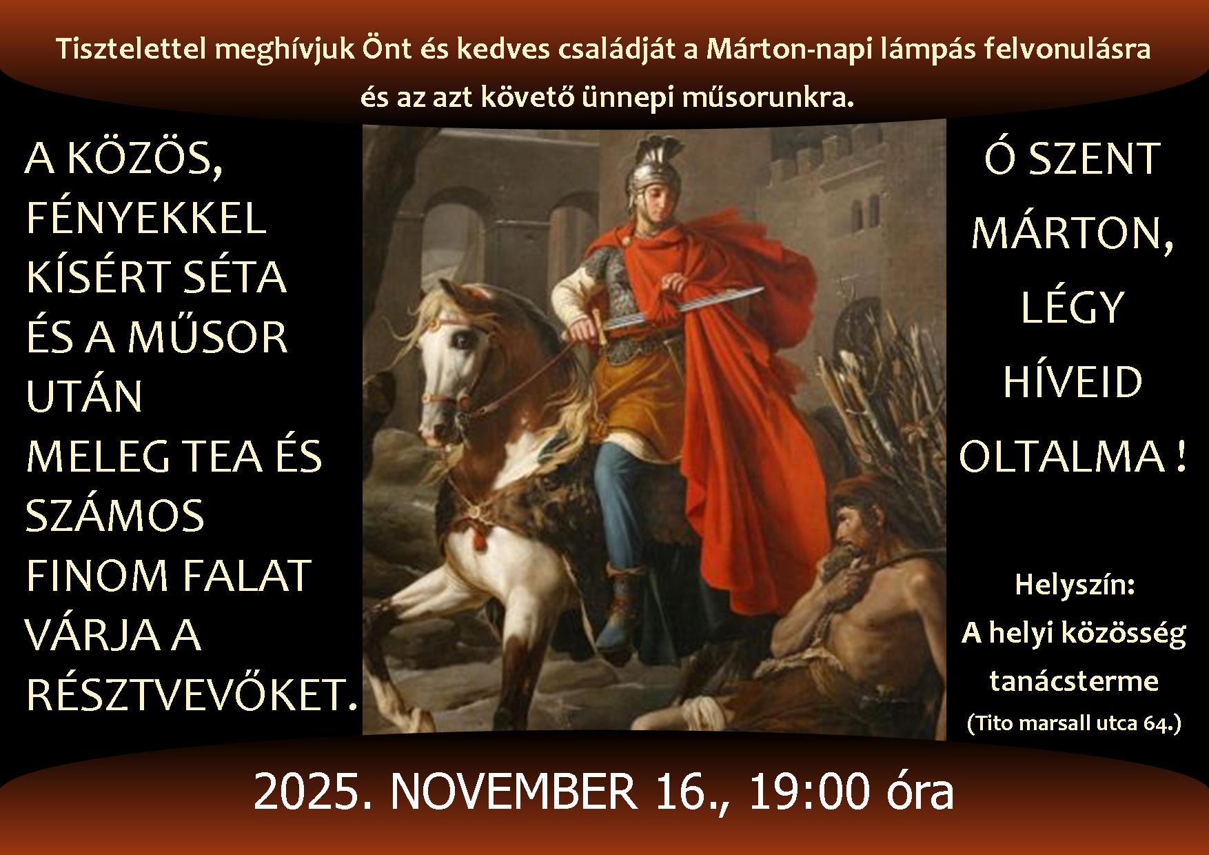 Énekszóval kísért lámpás felvonulással és ünnepi műsorral emlékezett meg a dél-bánsági szigetmagyar település, Ürményháza lakossága Tours-i Szent Mártonról, az első szentként tisztelt hitvallóról.