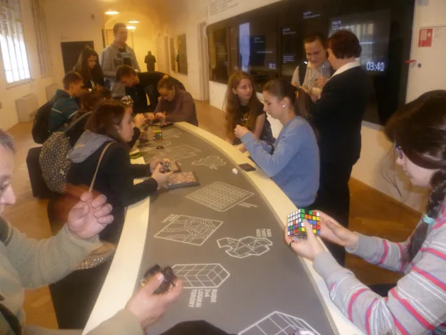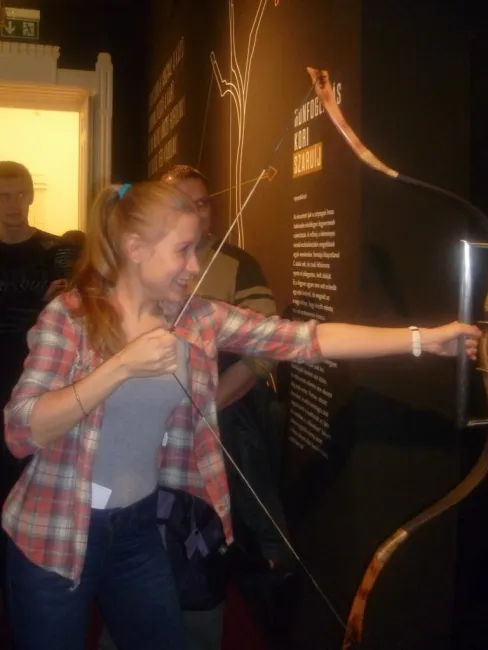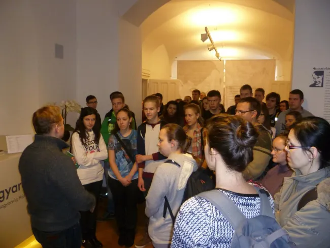 Elsőként a Budai Vár szívében található Magyarság Házában tekintettük meg a Mi, magyarok című kiállítást. A Kosztolányi Dezső által kiválasztott legszebb 10 magyar szó nyomán indultunk el a tárlaton, hogy önmagunkra leljünk, hogy rádöbbenjünk értékeinkre, mindarra, amiért büszke lehet minden magyar, bárhol is él a földön. A kiállítás - ahol a felvidéki születésű Rabec István nyelvész, a Magyarság Háza múzeumpedagógusa volt az idegenvezetőnk - kreatívan, a fiatalok számára is izgalmasan mutatta be a magyarságot érintő kérdéseket. Tanulóink lelkesen kipróbálták, milyen érzés lóra pattanni, kezükbe íjat fogni, játszottak a felfordítható kvízkérdés-kártyákkal, megismerkedtek a természet magyar csodáival, a 10 legszebb magyar verssel, virtuálisan magyar tájételeket főztek, gombfociztak és bűvös kockáztak. Gyerekek és tanárok maradéktalanul élvezték a kiállítást, amit minden magyarnak látnia kell!