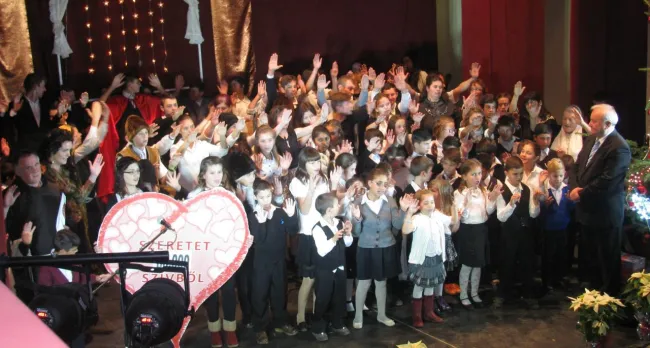 Csaba atya boldogan újságolta, hogy megszületett az első nagyszalontai unoka, egy, a szalontai otthonban nevelkedett fiatal kislánya. Az édesanyát jól ismerték a hajdúvárosban, diákévei során többször lépett az adományestek közönsége elé. Egyetemet járt, férjhez ment, s ma boldogan neveli pici leánykáját. Az ilyen sikertörténetek adnak friss lendületet a szalontaiaknak, hogy újra meg újra a nemes feladat mellé álljanak támogatásukkal. S nem is akármilyen mértékű ez a segítség: az idei adományest során mintegy 80.000 lej, közel tizennyolcezer euró gyűlt össze. A gyermekek a színpadra sorakozva, imádsággal köszönték meg a nemes felajánlásokat.
