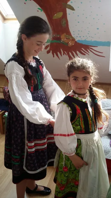 Nagy volt a készülődés és hangzavar a reggeli órákban, 50 gyermek készülődött az első népviseletes táncházához. Míg egyesek öltöztek, a többi már hajat font, előkerültek a pántlikák és a szebbnél-szebb kalárisok. A csapatot két nagy részre osztva különböző foglalkozásokon vehettek részt. Az egyik csoport elsőként a múzeumba ment, ahol Tar Virág tartott foglalkozást, tárlatvezetést a Kallós Zoltán Néprajzi Gyűjteményben. Ezután mezőségi női és férfi viseletet terveztek, ebben Major Melinda és Florisca Tünde voltak segítségükre. A csapat másik fele ebben az időben táncházban volt. Nagy volt a boldogság, hogy viseletben lehettek, élvezték a nagy szoknyák pörgését. A foglalkozást Varga Orsolya és Pillich Balázs vezette, éneket tanított Füleki Renáta.