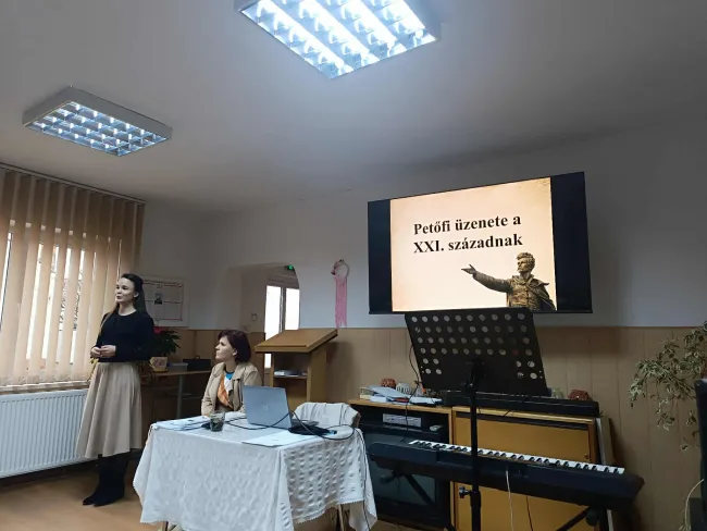 A „Mit üzen Petőfi a XXI. századnak?” című előadásban a költő alakját egy mai állásinterjú elvárásainak tükrében vizsgáltuk. Életútját, személyiségét és verseit párhuzamba állítva kerestük a választ arra a játékos, mégis elgondolkodtató kérdésre: vajon Petőfi Sándor megállná-e a helyét a 21. századi munkaerőpiacon? A beszélgetés során a résztvevők nemcsak irodalmi ismereteiket mélyíthették el, hanem saját tapasztalataikat és meglátásaikat is megoszthatták.