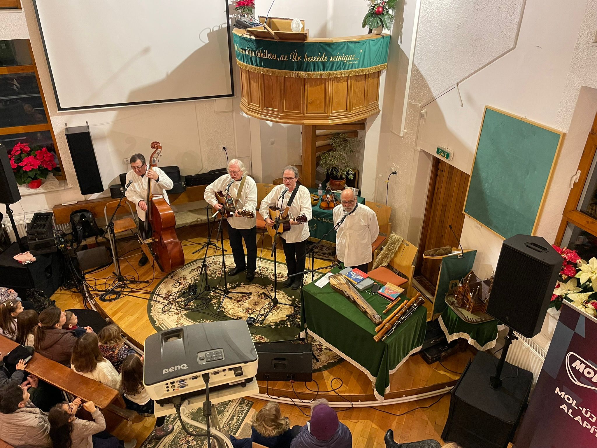 Ugyanis a Kaláka látogatása a Barcaságban nemcsak zenei élmény, hanem nyelvi és kulturális misszió is. Ugye, Brassóban a magyarság szórványban él, egy-egy ilyen koncert, különösen a plébánián, ezúttal a Reménység Házában, az egész közösséget megmozgatta a legkisebbektől az idősekig.