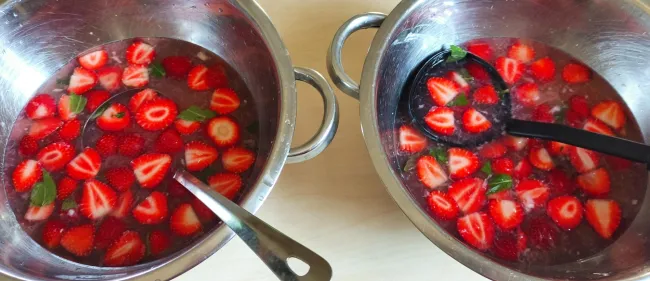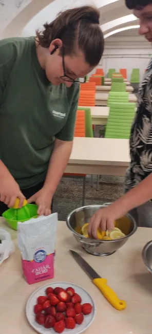 Egy kis pihenő után közös limonádét készítettek a gyerekek frissen facsart citromból; cukorral, eperszeletekkel, friss kerti mentával ízesítve. Az egészséget szem előtt tartva természetesen cukormentes verzió is készült!