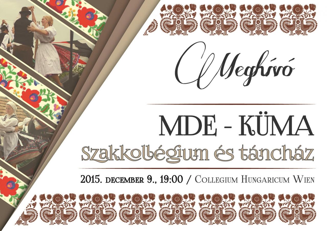 A bécsi Magyar Diákok Egyesülete (MDE-VUS), a budapesti székhelyű Külföldön Tanuló Magyar Egyetemisták Egyesülete (KÜMA) és a Délibáb Bécsi Magyar Kultúregyesület először rendezett közösen szakkollégiumot és táncházat A december 9-én hagyományteremtő szándékkal életre hívott rendezvénnyel a szervezők egy, a jövőben megvalósuló előadássorozat alapjait szerették volna lerakni.
