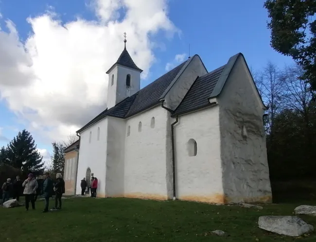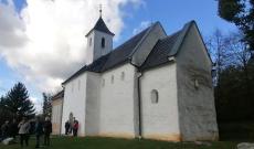 A zarándokok elsőként Gímeskosztolány ősi templomába látogattak el. A Szent György tiszteletére szentelt templom története a legújabb feltárások szerint akár a 9. század végéig vagy a 10. század elejéig is visszanyúlhat, így a legrégebbi előromán szakrális építészeti emlék lehet Szlovákiában. Falait kora középkori freskók töredékei díszítik, melyet a legkorábbi nedves vakolatra festett falfestményként tartanak számon. A zarándokcsoport Ložek Lukáš plébános atya előadásában részletesen megismerhette a templom történetét egészen napjainkig, majd az ezredéves szent helyen közös imával búcsúztak Gímeskosztolánytól.