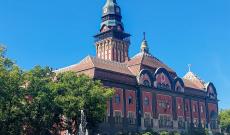 A főtérhez felé közeledve már emelkedik az előttünk a monumentális városháza, de még mielőtt még odaérnénk, érdemes egy kitérőt tenni a Városi Könyvtár irányába. Most nem a bejáratnál görnyedő atlaszokra helyezzük figyelmünket, hanem a szomszédban álló, elsőre tájidegennek ható bérházra. A mára már megviselt állapotban lévő városi bérpalotát 1912-ben építette az akkor még ismeretlen Vadas Pál. Letisztult, geometrikus formák és díszítések alkotják, melyek a szecesszió egy másik iskolájának, a kései bécsi stílus a jellegzetességei.