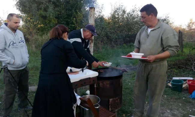 Az udvaron felállított nagyüstben rotyogott a birkapörkölt. Az asztalokat finom házi sütemények, kalácsok telítették.