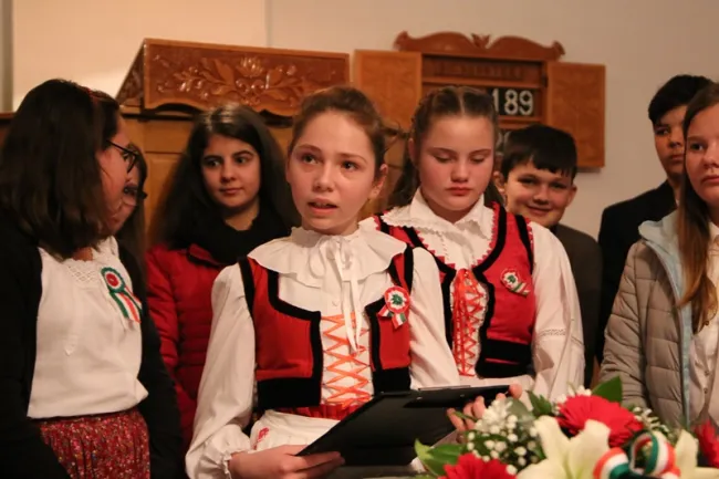 Az ünnepi műsorban újra a gyerekek kaptak főszerepet. Tirmai Anita, 5. osztályos tanuló Ábrányi Emil: Él a magyar c. versét mondta el, és őket követően a Báthory iskola gyermekeinek kórusa négy népdalt énekelt el.