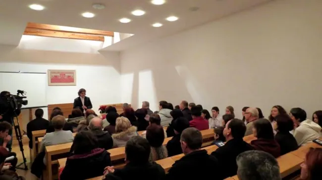 Az est házigazdája, Koppándi-Benczédi Zoltán köszöntötte az egybegyűlteket, és örömét fejezte ki, hiszen mindig örömteli esemény, amikor zsúfolásig megtelik a templom. A gyertyagyújtás és köszöntés után az ösztöndíjasok közös előadása következett. Elmondható, hogy a Hunyad megyében élő magyarok viszonylag keveset tudnak a Kárpátalján élő magyar honfitársaikról. És ez az állítás fordítottan is igaz. Így sok érdekes információval szolgáltak a kíváncsi közönségnek. Kárpátalja történelme, magyar lakosságának aránya, a jelenlegi háborús helyzet, a kisebbségi élet nehézségei és lehetőségei, valamint a jövőbeli lehetőségek boncolgatása mind-mind napirendre kerültek a fényképekkel és saját élményekkel tűzdelt előadás során.