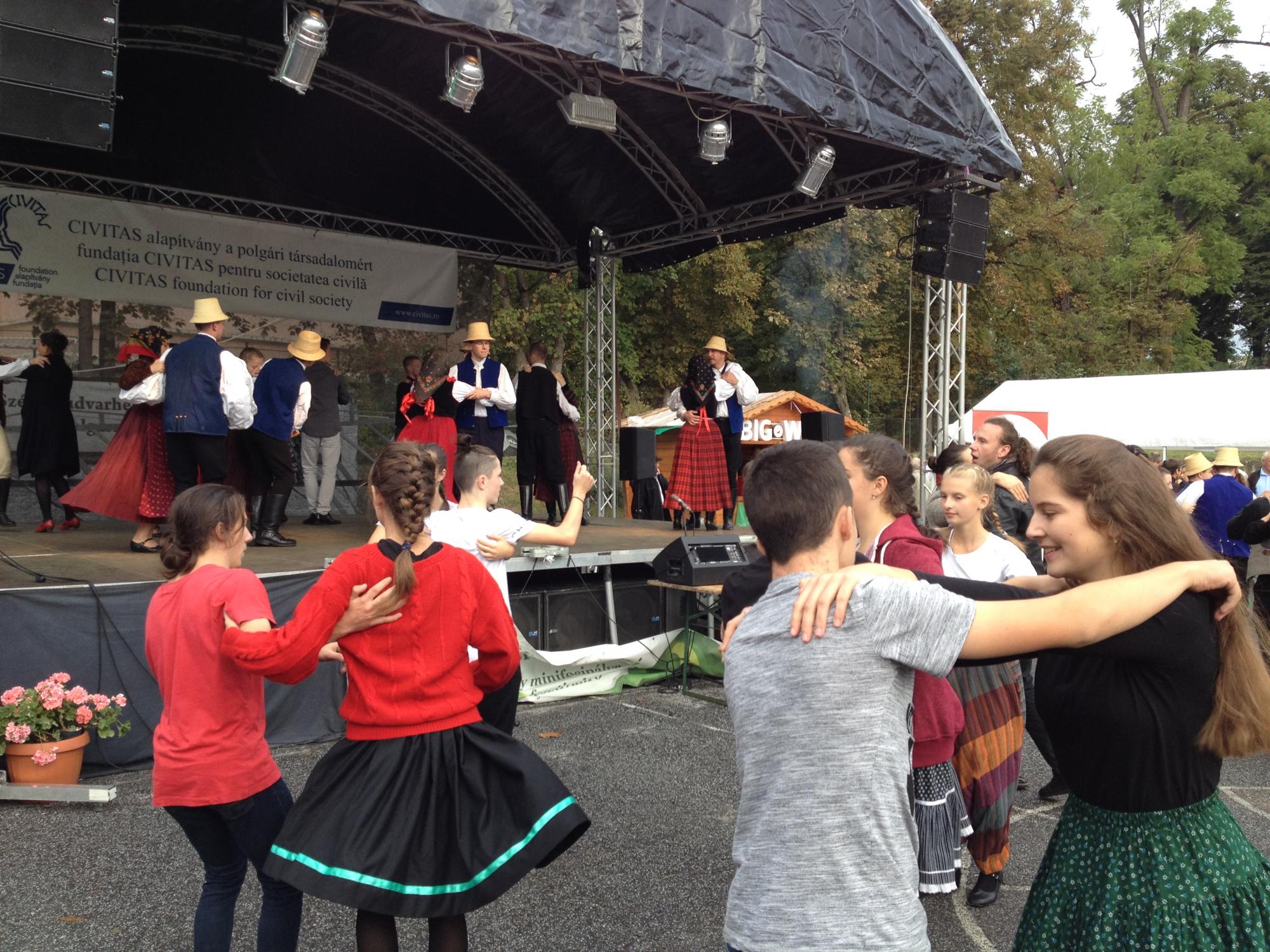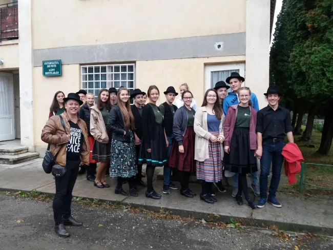 2017. szeptember elsején érkeztem meg Segesvárra a Petőfi Program új ösztöndíjasaként. A „röpke” tizenegy órás út alatt izgatottan gondolkoztam azon, hogy mi lesz Segesváron a dolgom, kikkel fogok együtt dolgozni, miket fogok csinálni, és hogyan tudok segíteni az itteni magyar közösségnek. Megérkezésem után kezdeti feladataim közé tartozott a vár körbejárása, valamint a Kikerics Néptáncegyüttes megismerése, melynek vezetője László Imola, koreográfusai, oktatói Varró Huba, Bugnár Zsolt és Kovács Melinda. Mivel az együttessel fogok több időt tölteni az ittlétem során, ezért a közös kirándulások, és programok nagyban hozzájárulnak ahhoz, hogy még jobban összekovácsolódjunk a csapattal. Legutóbbi közös kirándulásuk alkalmával - szeptember 22-24 között - a Székelyudvarhelyen megrendezésre kerülő erdélyi táncháztalálkozóra látogattunk, ami egyúttal az erdélyi táncházmozgalom negyvenedik évfordulóját ünnepelte.