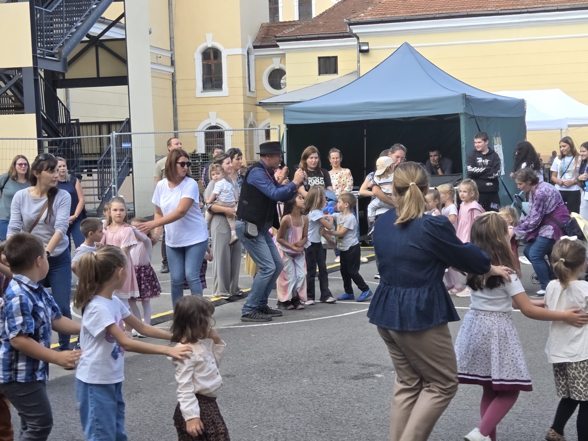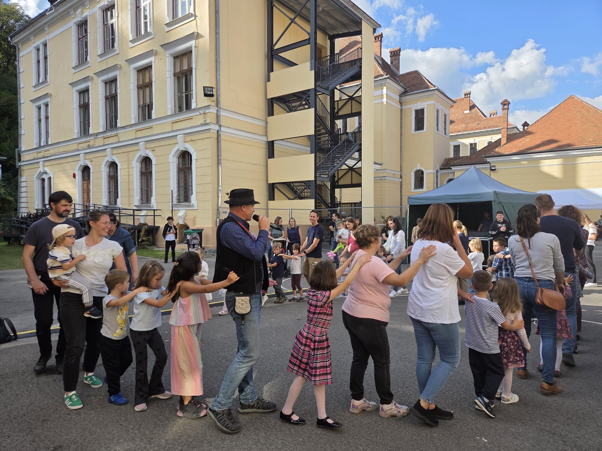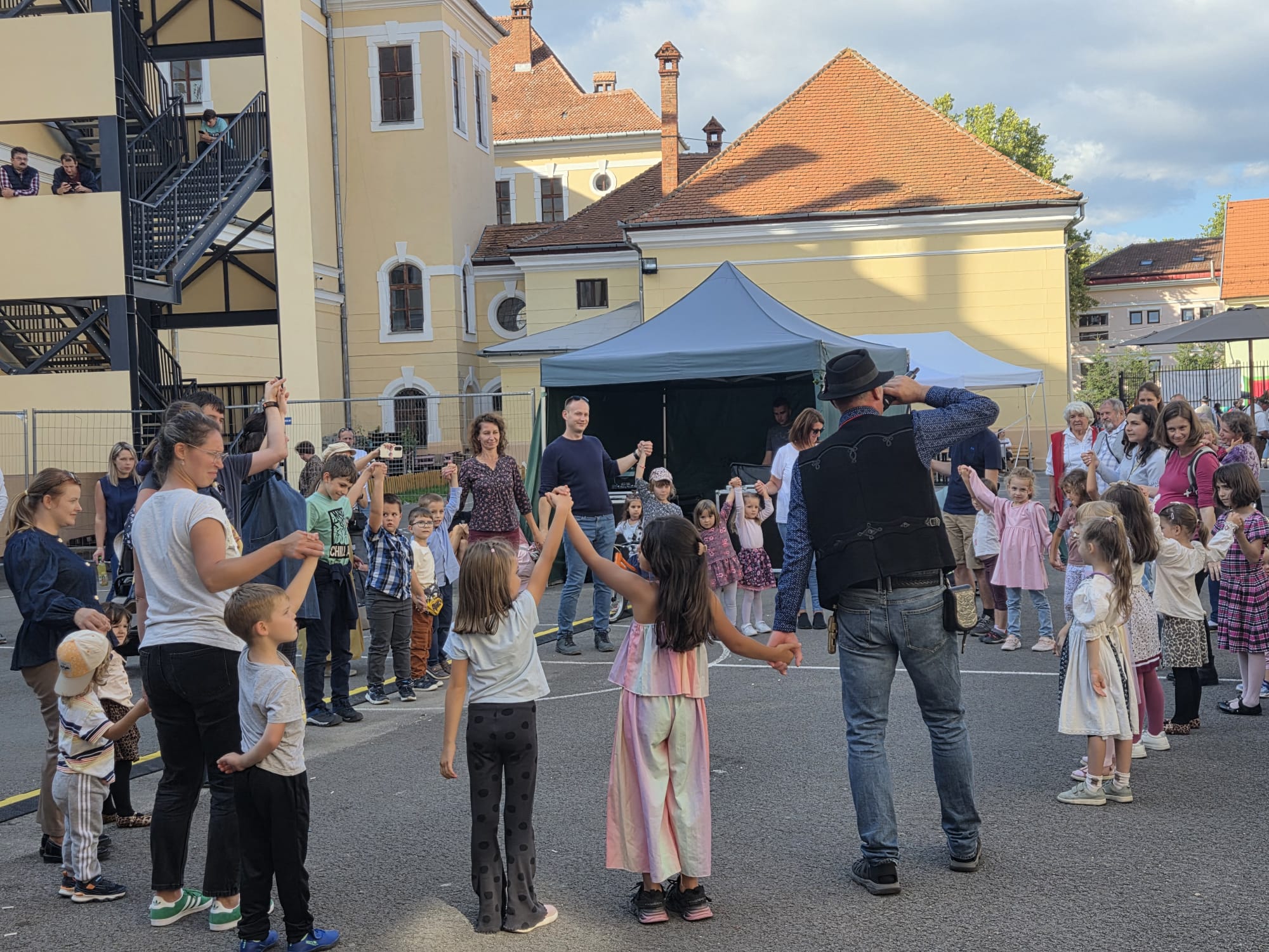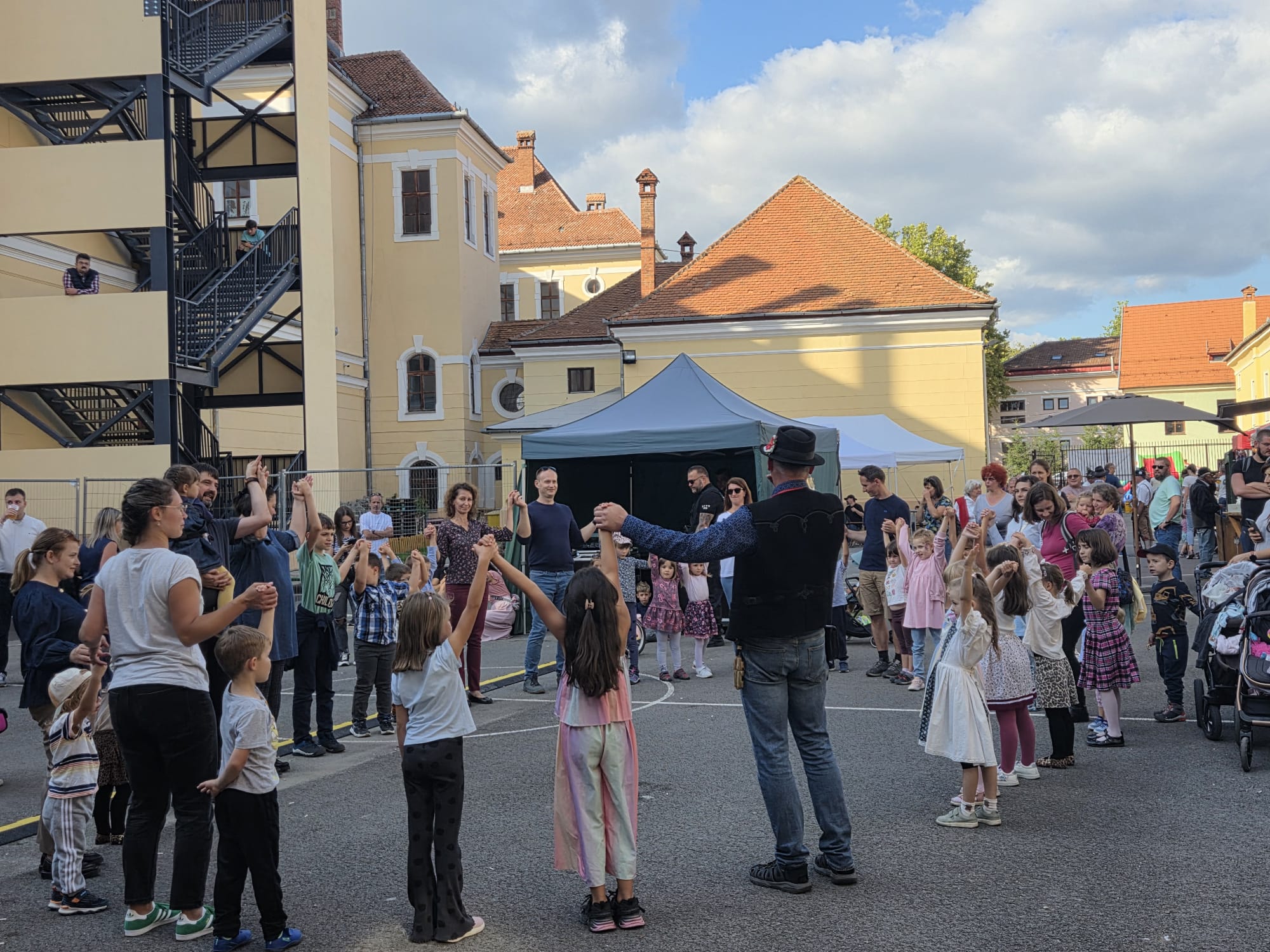 Gyerekek és szülők közös tánca az Áprily Lajos Főgimnázium udvarán