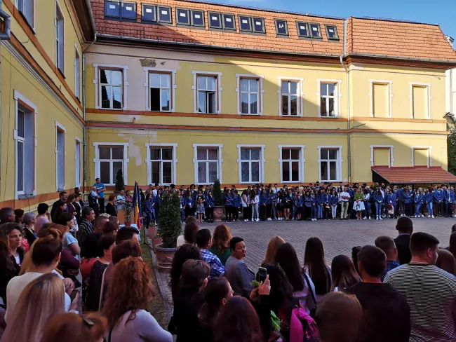 A tanévnyitóra szeptember 9-én került sor, reggel 8 órától ökumenikus istentisztelettel nyitottuk meg a tanévet, a városi unitárius templomban, ahol a magyar tagozat diákjai, tanárai, a közösség egyházi tisztviselői gyűltek össze, hogy közösen imádkozzanak. Ezt követően a Főgimnáziumban már román nyelven folyt a hivatalos tanévnyitó, ahol László Imola, igazgatóhelyettes, a magyar tagozat szakmai vezetője, röviden magyarul is szólt, bátorító szavaival a magyar tagozat diákjaihoz, tanáraihoz és a tanévnyitón megjelent szülőkhöz.