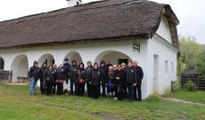 A borús, esős idő sem szegte kedvünket, és a délutánt a Szentendrei Skanzenben töltöttük, ahol egész Magyarország néprajzi tájegységeinek hagyományos építkezése, eszközei, életmódja egy helyen van összegyűjtve és bemutatva. A Jászárokszállási Fogadóban elköltött ebéd után az Alföld, Kisalföld és Dunántúl épületegyütteseit tekintettük meg egy kellemes séta során.