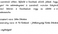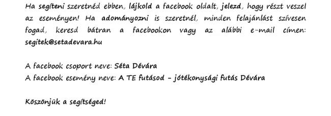 melynek neve „A TE futásod – jótékonysági futás Dévára”