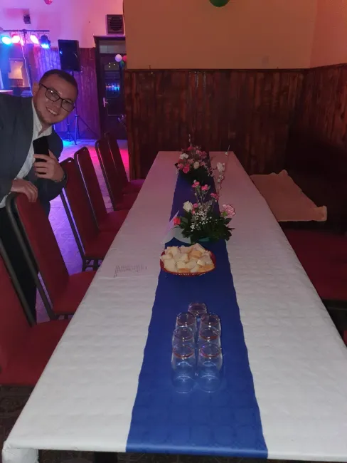 Elérkezett a bál napja, amely az utóbbi három év szürke hónapjai után üde színt hozott a hétköznapokba, s emlékezetes időtöltést biztosított a helyieknek. A rendezvény elején minden érkezőt egyformán köszöntöttünk belépésekor, utána ki-ki elfoglalta az asztaloknál a kijelölt helyét. Az asztalokat virágkosarak díszítették (Cseh János, a helyi Rákóczi Szövetség vezetőjének támogatásából); a táncmulatság megkezdése után az asztalokra egy kis csipegetni való is került Pintér Lajos és Kancsár Tibor támogatásának jóvoltából. Este 20 órától egészen hajnali 3-ig „ropták” a táncot a helyi- és környékbeli magyarok. Voltak itt 15 évestől egészen 60 éves korig. A fiatal főszervezők (Virág István, Lelik Róbert) szemében láttam, hogy büszkék arra, hogy újra életet leheltek a falu magyarságába. A talpalávalót a nagykikindai Barna Zenekar tagjai Samu Csongor (szintetizátor) és Barna Mátyás (ének és hegedű) biztosították.