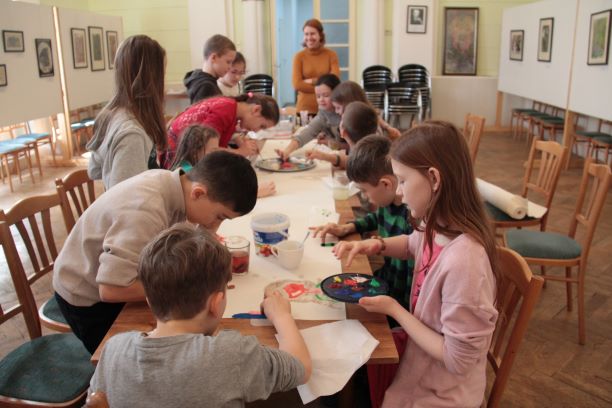 M. Kiss Márti és Csicsói Nagy Géza felvidéki festőművészek, közös kiállításukat novemberben nyitották meg a Csemadok Rákosi Ernő-nagytermében Pozsonyban. Az ünnepi készülődések miatt az intézmények nem tudtak részt venni a számukra szervezett foglalkozáson. Februárban pótoltuk, végül három osztály vett részt az interaktív kiállításlátogatáson.