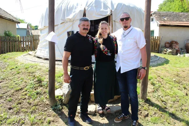A jurtában Takács Máté mutatta be a tárlatot Zagyi Csenge segítségével.