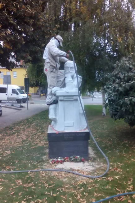A kft. vezetője, régi csemadokos, vállalta a Szenczi Molnár Albert szobor, valamint kvótán felül Szeberényi Lajos sírkövének megtisztítását is, ami szintén a pozsonyi Kecske-kapu utcai temetőben található. Szeberényi Lajos, ahogy sírkövén is olvasható, Petőfi Sándor jó barátjaként volt ismert.